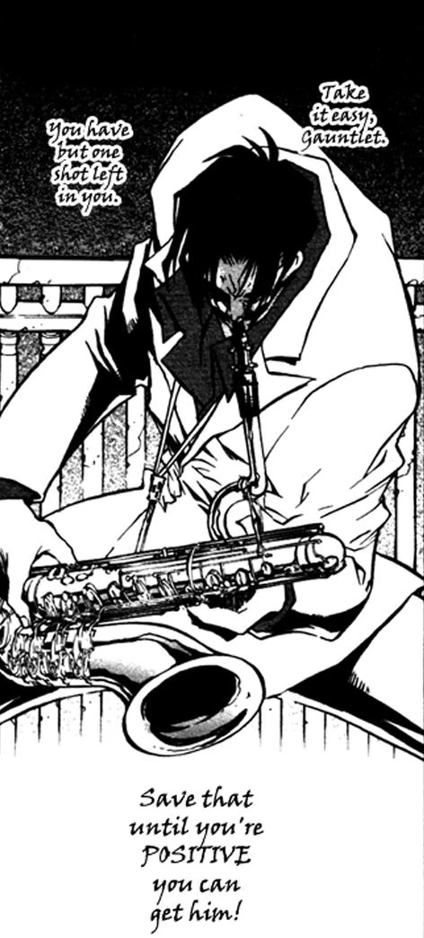 Звуковые атаки - Мидвалли с помощью своего музыкального инструмента способен производить звуки, разрушительно воздействующие на мозг людей (но не на него и его союзников). Если дело дошло до прямого столкновения, Мидвалли использует автомат, встроенный в саксофон или носимый в кармане полуавтоматический пистолет.