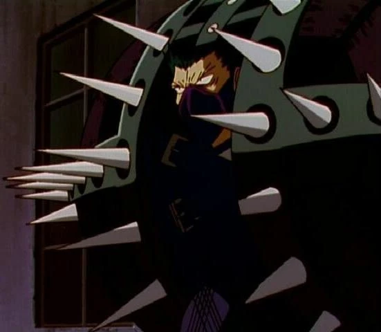 Mine wears a suit resembling a sphere. By pulling threads connected to the sphere with his fingers, he can fire lethal spikes at his enemies.