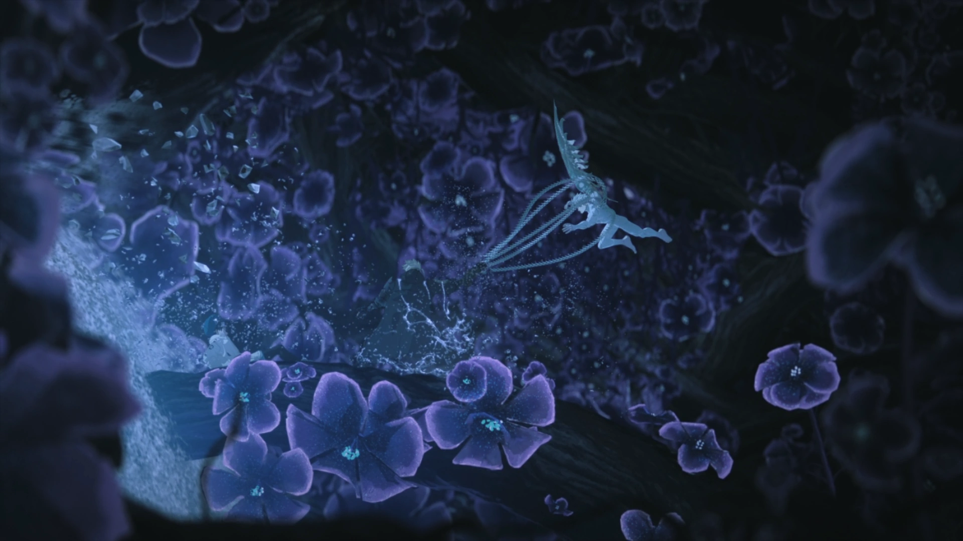 Meryl doesn't give up and continues to call out Vash. Vash dreams of a time when he was young and with Knives, who tells him he will protect him. Vash then sees a red flower in his hand calling his name. He then remembers that it wasn't Knives who promised him that he will protect him and runs away. He grows older and Rem thanks him for protecting her dreams and hopes. Vash then hears Meryl calling him. William then notices that something is happening with Vash and the power start flowing in reverse, severing Knives connection with the core and sending him back through the gate. The gate closes and the roots start to return to Vash. Knives is angry and attacks Meryl, however Vash wakes up and protects her.