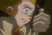 This is the first time that a change in Knives' demeanor can be perceived. Later, the crew discusses the twins' hairstyles, with Vash getting called a "momma's boy." Steve gets angry and calls the two of them monsters again then drapes himself over Mary when she tells him he's had too much to drink. Knives rebukes him, saying "You are a disgrace. Is that any way for a grown man like you to behave in the presence of innocent children?" Steve laughs manically out of the room. When the others comment on his crazy behavior, Knives whispers, "It's because he's afraid". Later on, Knives is seen entering Rolan's room, and then Mary's room (both rooms occupied by their owners) . It is later implied Knives convinced Mary and Rolan (who has feelings for Mary) that they should both make up a story in order to get Steve out of the way.