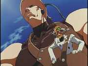 Vash is captured without the Nebraskas' help in a small saloon, but soon Nebraska's reveal they have plans of their own for the bounty. The bar is destroyed by Goseph's retractable fist, but all inside manage to survive. Vash carries the survivors to safety and stands off with the Nebraskas, but the family stoops to lower methods by taking aim at the survivors in order to strike Vash off his guard. However, Vash thwarts this action and defeats the Nebraska family with only six bullets.