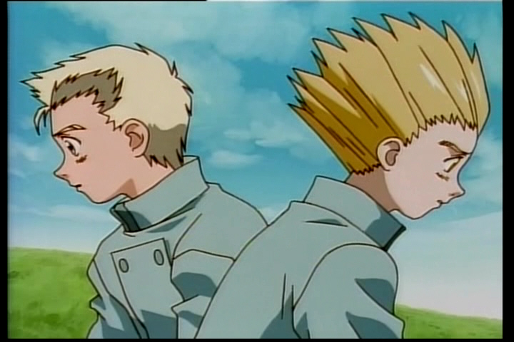 Again at the recreation room, the twins and Rem find a butterfly stuck in a spiderweb. Vash attempts to save it when Knives grabs the spider, killing it. Knives justifies the action by saying it was the easiest way to stop the spider and save the butterfly. Vash, however, becomes distressed because he wanted to save both. Knives counters that you can't save both because the spider would die of starvation unless it ate the butterfly. Rem breaks in, saying that you can't make that choice lightly because they're both living creatures. Knives continues to argue that his way of thinking is right. Vash knocks him to the ground and yells at him stating he wanted to save both, completely stunning Knives. After a moment they both sit up. Knives leaves, saying that the two of them don't make any sense; Vash shouts back that it is him that doesn't make any sense.